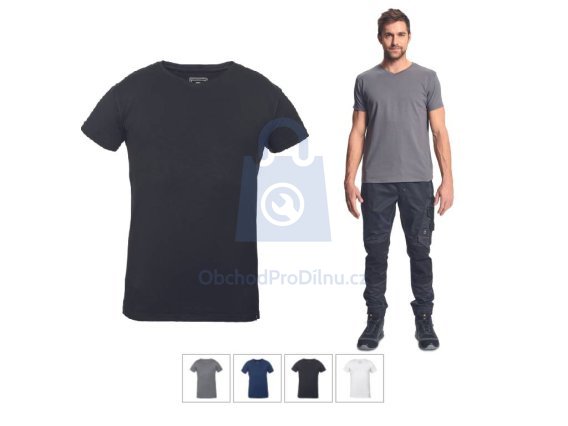 Tričko má krátké rukávy a výstřih do V, který dodává moderní a civilní vzhled. Díky příměsi elastanu si udržuje tvarovou stálost i po opakovaném praní. Je vhodné jako první vrstva pod pracovní mikinu nebo bundu, nebo jako samostatné tričko v teplejších dnech.