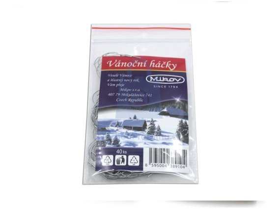 Výrobce: Mikov Mikulášovice. Tradiční pozinkované vánoční háčky pro zavěšení ozdob – pevné, odolné a snadno použitelné.