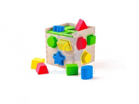 Didaktická vkládací krabička vyrobená z poctivého dřeva je nesmrtelnou klasikou mezi dětskými hračkami. Pomáhá dětem učit se koordinovat pohyby, rozvíjet jemnou motoriku, poznávat barvy a tvary. Díky kvalitnímu materiálu si můžete být jisti, že si s vkládačkou později budou moci hrát i mladší sourozenci. Balení obsahuje krabičku s 12 dřevěnými kostkami různých geometrických tvarů, které děti vkládají do otvorů. Každá kostka lze prostrčit pouze příslušným otvorem, jehož okraj je na krabičce označen ve stejné barvě jako kostka (kromě víka). Po vložení všech kostek lze víko jednoduše vysunout, kostky vyndat a začít znovu. S touto didaktickou hračkou si vyhrají kluci i holky již od 2 let.