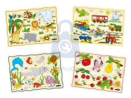 Vkládačkaz poctivého dřeva je klasikou mezi dětskými hračkami. Pomáhá dětem učit se koordinovat pohyby, rozvíjet jemnou motoriku, poznávat barvy a tvary. Díky kvalitnímu materiálu si můžete být jisti, že si s vkládačkou později budou moci hrát i mladší sourozenci. Balení obsahuje vždy základovou desku, které děti vkládají dílky odpovídající tvaru výřezu. S touto hračkou si vyhrají kluci i holky od 3 let. Různé motivy.