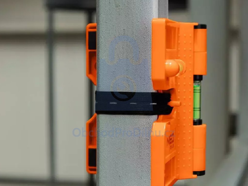 Volné ruce při práci: Čtyři silné magnety udrží vodováhu pevně na kovovém sloupku, takže se můžete plně soustředit na montáž.