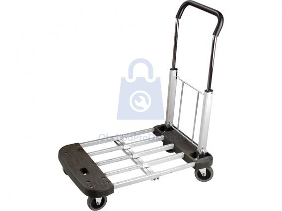 Skládací vozík najde využití pro převoz věcí v každé dílně, garáži i na montáži. Vozík má pevnou konstrukci z hliníkové slitiny a kvalitního plastu. Železná rukojeť je výsuvná a umožňuje nastavení výšky. Délka nosné plochy je nastavitelná od 53 do 74 cm, nosnost je až 150 kg.