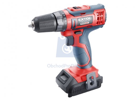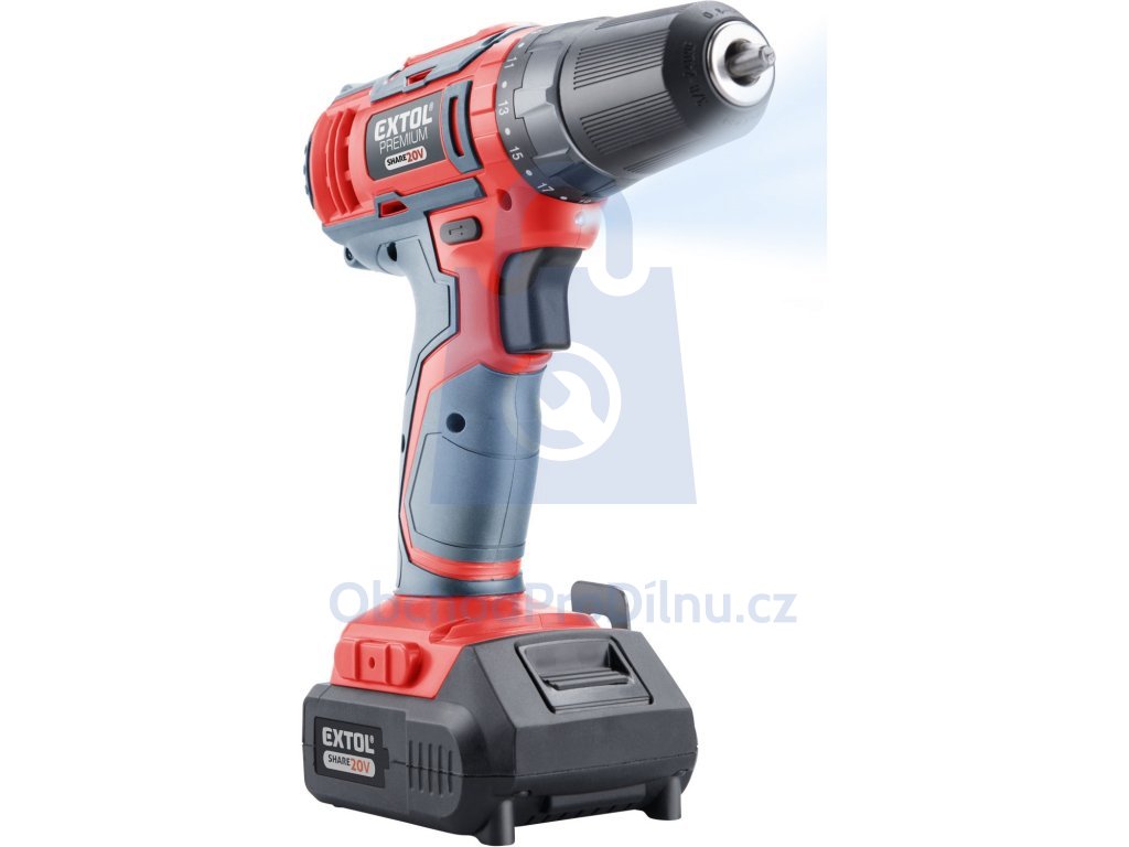 Lehký a výkonný dvourychlostní vrtací aku šroubovák s příklepem je ideálním pomocníkem pro vrtání do kovů a dřeva. Je určen pro náročnější práce a díky svému příjemnému designu se s ním velmi dobře pracuje i při dlouhodobém používání. Srdcem vrtačky je vysoce výkonný motor se spolehlivou a dlouhodobě ověřenou konstrukcí a celokovová převodovka zajišťující bezchybný chod při i vysoké zátěži. Díky aretaci sklíčidla lze snadno měnit vrtáky jednou rukou. Akumulátor lze použít ve všech typech nářadí řady EXTOL SHARE20V. Stroje lze zakoupit v sadě s akumulátorem nebo samostatně. Díky použité Li-ion technologii je možné akumulátor kdykoliv dobíjet, aniž by se tím snižovala jeho kapacita. Li-ion akumulátor ztrácí energii vlivem samovybíjení velmi pomalu a vydrží dlouho nabitý a připravený k použití.
