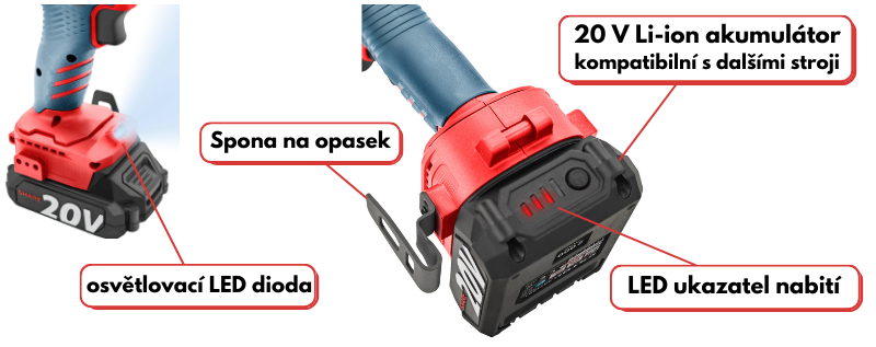 | charakteristika produktu | vrtací aku šroubovák s příklepem, max. moment 50 Nm |