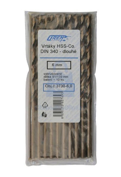 Vrták do kovu HSS-Co, kobaltový, prodloužený, OREN - technické info: