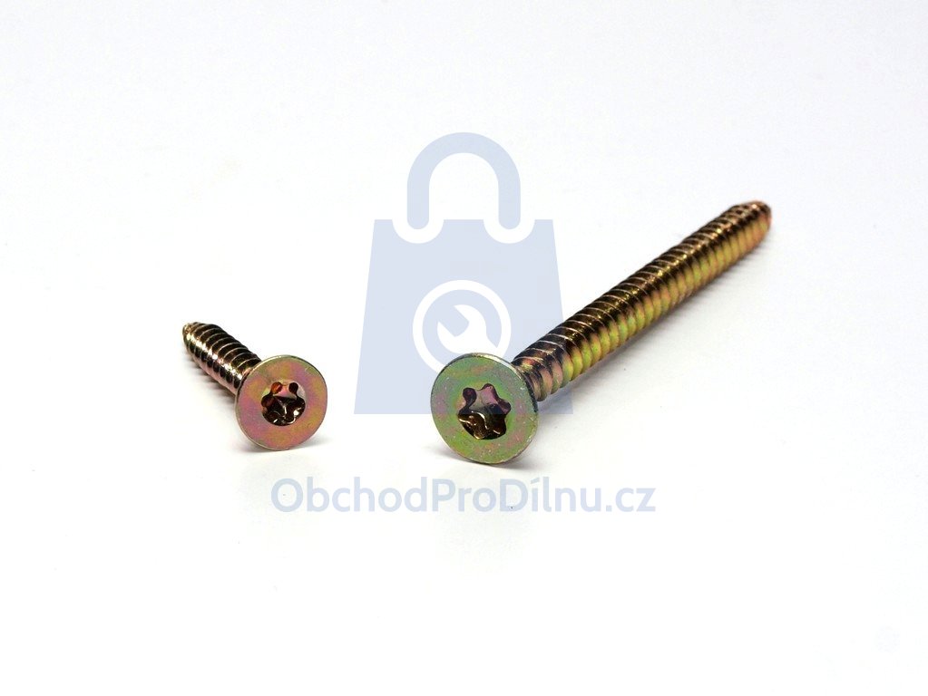 Vrut se zápustnou hlavou je vyroben s TORX drážkou a jeho povrch je ošetřen žlutým zinkem. Vrut, který má v zápustné hlavě speciální hvězdicovou drážku TORX se snadněji utahuje "na sílu" a nedochází zde k přeskakování bitu a zničení drážky. Díky tomuto faktu je vrut také snadněji vymontovatelný ze spoje, je-li potřeba. Hlava vrutu je zapuštěná do materiálu. Využívá se nejčastěji při práci s dřevotřískou, dřevem či hmoždinkami.
