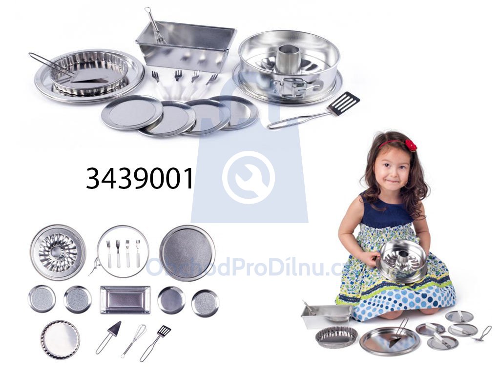 - obsahuje: formu na bábovku, 4x talířek, 4x vidličku, obdélníkovou formu, formu na dort, formu na koláč, 3x náčiní