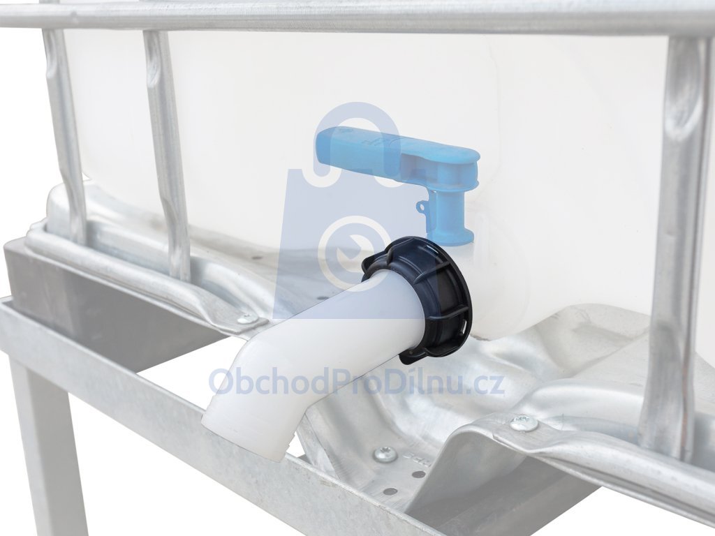 Výpusť na IBC nádrž umožňuje snazší vypouštění vody do kropáče, kbelíku či jakékoliv jiné nádoby. Výpusť využívá celé kapacity průtoku kohoutu z nádrže, neredukuje ho, ani ho nijak neomezuje. Rozměr závitu nádrže je 60 mm (hrubý závit DN50). Pokud máte jiný závit, použijte redukci.