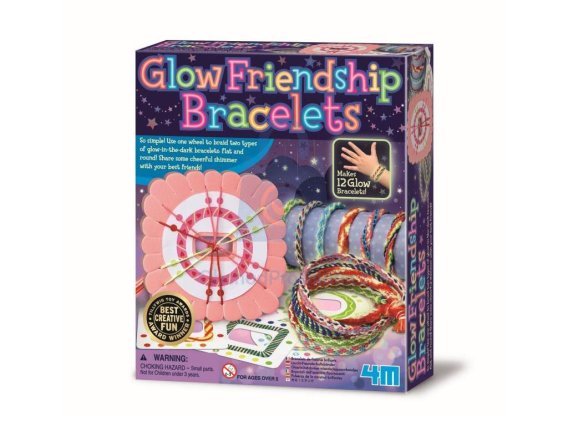 Kreativní sada Výroba náramků přátelství od značky 4M umožňuje dětem tvořit originální náramky přátelství. Je určena pro děti od 3 let (uvedeno „věk od 3 měsíců“, pravděpodobně chyba v zadání – doporučeno věk od 3 let). Sada nevyžaduje baterie a je vhodná pro kreativní domácí použití. Sada obsahuje materiály pro výrobu náramků, umožňuje rozvíjet jemnou motoriku a kreativitu. Balení má rozměry 24 × 25 × 10 cm, hmotnost 0,20 kg. .