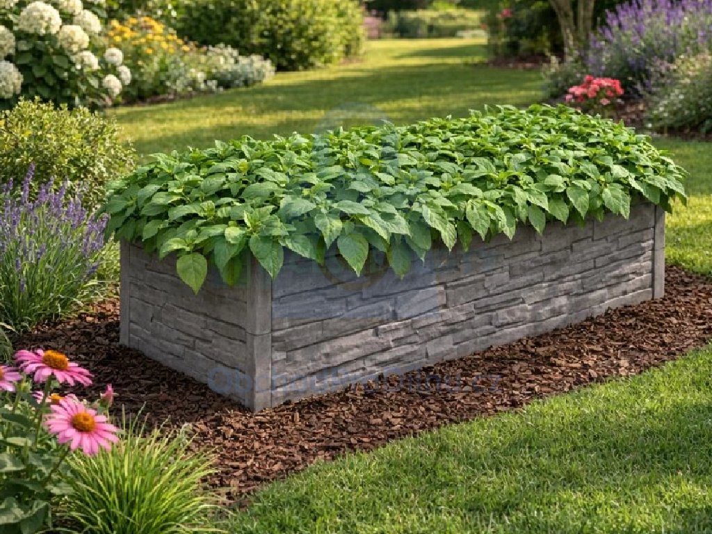 | provedení, specifické vlastnosti | robustní designový vyvýšený záhon v šedé barvě s extrémní životností |