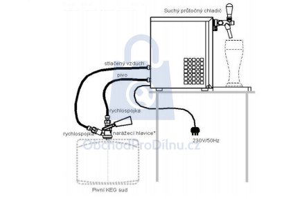 - 4 metry nápojové hadice (2 m na připojení piva do výčepu a 2 m na připojení kompresoru k sudu)