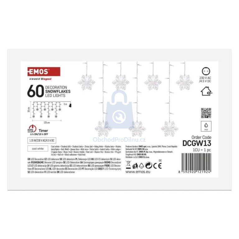 Výrobce: EMOS. LED závěs s motivem vloček pro vánoční osvětlení oken a interiéru.
